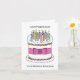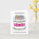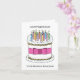 En illustration av en stor vit födelsedagstårta dekorerad med brinnande ljus på toppen och ett rosa band knutet runt den. Orden 'Grattis på födelsedagen till min underbara bonus syster' följer med bilden, som har en vit bakgrund.