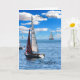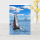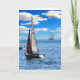 Grattis på födelsedagen-kort till din bror med båt på havets vita moln och blå himmel tycks röra vid det blå vatten