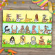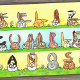 Tre rader kaniner stavar "Grattis på födelsedagen" med öronen.