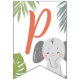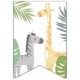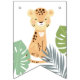 Banderollen Grattis på födelsedagen Flagga med en plan utformning av en hedervärd lejon, leopard, baby, elefant, giraffe, zebra och apa kommer att vara ett underbart tillägg till ditt barns party.