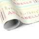 Pastellfödelsedagsljus och rand mönster personlig med namn repeterat.
