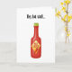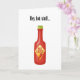 Utformningen på kortets framsida är av en hett sås flaska och säger Hej Hett saker! Insidan av önskemål grattis på födelsedagen i ett flammande teckensnitt.