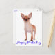 Ta bort någons speciella dag med den här roligten med Chihuahua-hund-födelsedagskort. Postkort på födelsedagen är det ekonomiska alternativet till dyra hälsningskort när du vill skicka en snabbfödelsedagseftergift till vänner, familj och kunder. Kortet roligt hund har en stilig och vit Chihuahua-valp med en Grattis på födelsedagen hälsning tryckt i ett fet royal blått typsnitt som markeras mot en skarp vit bakgrund. Innerverset lyder: "Min födelsedagsönskan för dig är att du lever i kärlek och aldrig slutar drömma. Må skönhet och lycka omger dig, inte bara på din speciella dag, utan alltid" trycks i ett handskrivet blått typsnitt för personligt bruk.