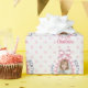 Elegant och snyggt personlig "grattis på födelsedagen" som omsluter papper med ett eget namn och ett foto med anpassningsbar på en rosa polka-punktbakgrund. Perfekt för en flickas födelsedag.