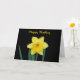 Grattis på födelsedagen-hälsningskort med en ljust gult daffodil-blomma i olja med svart bakgrund. Texten kan enkelt ändras så att den återspeglar din egen stil och dina behov. sgb01