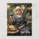 Grattis på födelsedagen Dam i trädgård med vin och Vykort