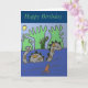 Det här vackra födelsedagskortet för barn visar en enkel tecknad av en liten dinosauyr, i ett blått sjö med ljusa gröntar mot ett lätt blå himmel. Den är ljus och färgstark, med text som du kan ändra för att göra den personlig.