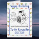Junior doktor sover i patientens sjukhussäng. Grattis på födelsedagen Doktor-kort. Anpassa med dina egna detaljer och meddelanden. Säg Grattis på födelsedagen till din GP med det här roliga kortet.