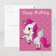 Grattis på födelsedagen, enhörning och hjärtan, an vykort