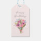 Grattis på födelsedagen enkel, rosa, blommigt, skr presentetikett