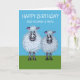 Tecknad av ett mycket lycklig får par som önskar grattis på födelsedagen.