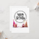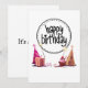 Denna inbjudan visar orden "Grattis på födelsedagen" i ett unikt trycktypsnitt med svarta bokstäver inuti en cirkulär design med födelsedagsfestdekaler i detta födelsedagstema och stil. Tryckt på ett klassiskt, runt papper med 17,5 pts tjocklek med en obestruken matta finish med en äggskalstruktur tillverkad och tryckt i USA med "It's A Party" tryckt på baksidan.