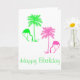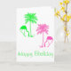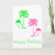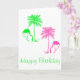 Grattis på födelsedagen önskningskort med Flamingor under tropiska Palmträd i Rosa och Grön