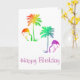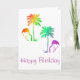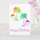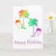 Grattis på födelsedagen kort med Flamingos under Palmer i en regnbågsfärgspalet.