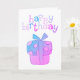 Grattis på födelsedagen, födelsedag Presentera födelsedagskort med rosa och lila färg och text.