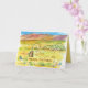 Ett födelsedags kort för en skattsökare metalldetektorist med en öken landskap med vindlande taggtråd, stubbar från en gammal korral och färgade glasflask rester i smutsen med kopparfärgade berg i fjärran. Inspirerad av Nevadas öken illustrerad med bläck och akvarell. Insidan har kinesiska mynt och andra skatter med en matchande nyans av gult.