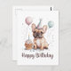 Söt fransk bulldogg födelsedagsillustration med hundar utklädda för att fira! Perfekt för hundälskare, franska bulldoggägare och alla som älskar presenter eller dekorationer med husdjurstema.