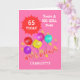 En roligt för en födelsedagskalender med färgstarka party-ballonger och strömmare och Grattis på födelsedagen i röd text. 65en är en stor flicka nu!" men de kan ändras till kostym i vilken ålder som helst för vuxnor eller barn. Kom ihåg att anpassa den med mottagarna namn för den speciella beröringen i extra.