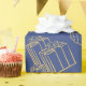Dessa moderna inslagna lakan har klassiska presenter och födelsedagsfester, guld och blått färg grattis på födelsedagen mönster.