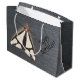 En väska av rostfritt stål ser ut som en gåva. Anpassa texten på den här snyggten designer-presentsäcken för ett särskilt tillfälle