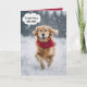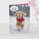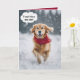Golden Reparant bar en röd halsduk och springer i snö för födelsedagen humor