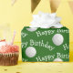 Grattis på födelsedagen om grönt med vitt golfbollar. Bakgrund färg och text kan redigeras.
