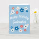 En söt blommig födelsedagskort för din fantastiska Gudmor! Den har en enkel design med blå, vita och röda blommor som omger vacker och elegant text. Insidan av kortet är tom så att du kan skriva ditt eget personliga meddelande.