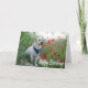 Ta en labrador hälsning med nån. Det här födelsedagskortet i roligt hund har en vacker gult Labrador med en blå näsduk sitta i ett skogsbevuxet fält av röda vilda blommor.