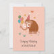 Det här roliga Grattis på födelsedagen Card-kortet har en tecknad som illustrerar den söta mammoths födelsedagshatt och fem färgstarka ballonger. Mammor omges av fjärilar och drakflugor. Idealiskt kort för sommarfödelsedag. Du kan enkelt anpassa texten i den nedre delen av kortet. Om du behöver hjälp, tveka inte att kontakta mig via Zazzle.