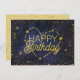 Anpassningsbarnas födelsedagskort med "Grattis på födelsedagen" i blandad typografi med guld-stjärnor, skjutstjärnor och hjärtkonstellation. Flera tillgängliga storlekar. Kan även hämtas direkt för att skickas och .