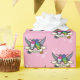 Lägg din födelsedagspresent på en papper förpackning med två färgstarka hummerfågelvänner som bär ett band med ett meddelande. Användan "Anpassa den här mallen" om du vill ändra texten "Grattis på födelsedagen!". Baserat på de gyllene Sapphire och Broad-tailed hummingbird. Matchande gratulationskort, klistermärken, vävnadspapper och presentkort finns i NoodleWings-märkrn.