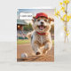 En fluffy hund med ett rött lock, joyully springa över en baseboll fält, med en baseboll i närheten. All text kan ändras.