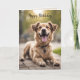 Sväng hund på tegelstenar för grattis på födelsedagen. All text kan ändras.