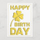 Grattis på födelsedagen i Guld med 4 löv-klöver! Vykort