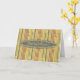 Ett mönster av blått, grönt som, är röda, och gula randar i varierande tjocklekar, strilas med lilla blommor. På denna bakgrund visas en att matcha oval medaljong för blått som klippas med en dekorativ blom- gräns; detta uthärdar ord, "Penblwydd Hapus", det walesiskt för "grattis på födelsedagen". Redigera insidan av kortet för att matcha dina känslor.