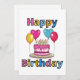 Denna inbjudan visar orden "Grattis på födelsedagen" i en fet stil med olika färger bokstäver svart kontur med en födelsedagstårta med ljus och ballonger i detta födelsedagstema och stil. Tryckt på ett klassiskt, runt papper 17,5 pt tjocklek med en obestruken mat finish med en äggskalstruktur tillverkad och tryckt i USA med "Grattis på födelsedagen" tryckt på baksidan.