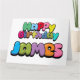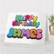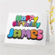 Färgfull "Grattis på födelsedagen James" bubblegum stil text.