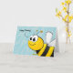 Detta födelsedagkort presenterar ett gulligt gigantiskt le biordstäv "grattis på födelsedagen.", I bakgrunden är en bikupa med idérika baby blue färger.