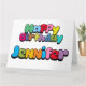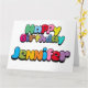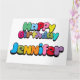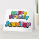 Färgfull "Grattis på födelsedagen Jennifer" bubblegum stil text.