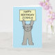 Ett stort innehav för tecknadgrå färgkatt upp en citron färgade banret den något att säga grattis på födelsedagen Joshua".