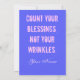 Grattis på födelsedagen kärlek! meddelande:Räkna dina välsignelser, inte dina rynkor. Det här kortet värmer hjärtat i en känslig själ, ditt kort talar ditt budskap till den ärvda mottagaren varje gång de läser det igen. Frontmeddelande för kortinformation: Inuti meddelandet Grattis på födelsedagen: Räkna dina välsignelser, inte dina vreden.