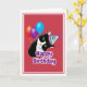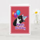 Söt smokingkatt som önskar grattis på födelsedagen. Har en svart och vit katt med födelsedagsmössa och ballonger. Meddelande redan inuti, eller så kan du skriva ditt eget. Vit kontur runt katten för mörka bakgrunder. Jag använde Zazzles former alternativ i lila, men du kan justera det. Bra för både barn och vuxna. Perfekt för födelsedagsfester.