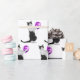 Tuxedo-katt med lila födelsedagsballong på vitt. Bakgrunden till färg kan ändras.
