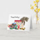 Tabby kitten i en presentlåda med rosett band runt den. Grattis på födelsedagen eller text kan ändras eller tas bort med knappen CUSTOMIZE.