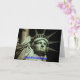 Ett underbart hälsningskort att skicka för den fjärde juli! Frihetsgudinnan som önskar Amerika ett grattis på födelsedagen på kortets framsida med ett meddelande på insidan för ett glad firande!