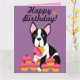 Söt hund! Den nyckfulla Boston Terriervalpen med det rosa kortet för muffinsanpassadefödelsedagen den inre hälsningen kan ändras eller personifieras av dig! Klicka skräddarsy som den knäppas för att starta!