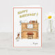 Mottagningskort för grattis på födelsedagen med piano, katt och hund. Humoriserat hälsningskort för tecknad för musik älskare.