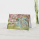 Gammal blå cykel i blomsterträdgårdens födelsedagskort.