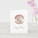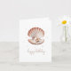 Ett känsligt gratulationskort för födelsedag med en vattenfärg-stil illustration av ett enkelt, beige scallop-säsongskal som försiktigt öppnats för att visa en ljusartad pärla inuti. Texten "Grattis på födelsedagen" är skriven i ett snyggt, handskrivet skript i stil i ett mjukt grått färg placerat elegant under snäckan och skapar en känsla av underskattad elegans och hjärtligt önskemål, perfekt för en nära vän eller familjemedlem.