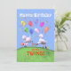Födelsedagskort för twillingar med min teckning av två söta, små tvillinglamm som firar sin födelsedag med födelsedagsballonger. Anpassadets text säger "Grattis på födelsedagen till Twillingarna!"